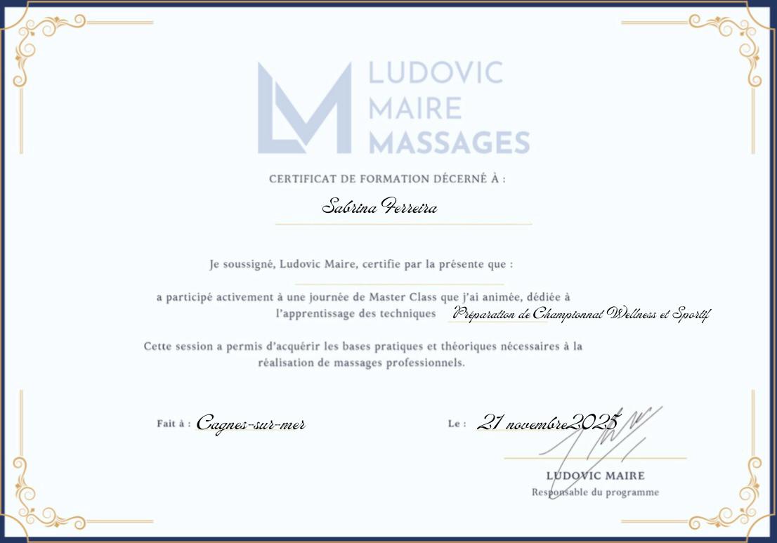 Formation professionnelle sur la Côte d'Azur-French Riviera par Ludovic Maire massothérapeute médaillé à plusieurs reprises, coach et soutien dans ma démarche.
